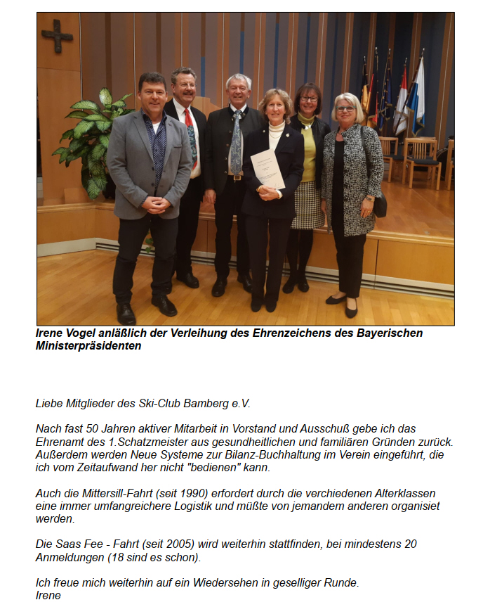 Ein großer Dank an die langjährige Schatzmeisterin Irene Vogel